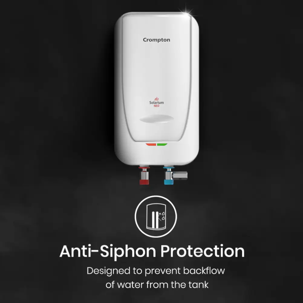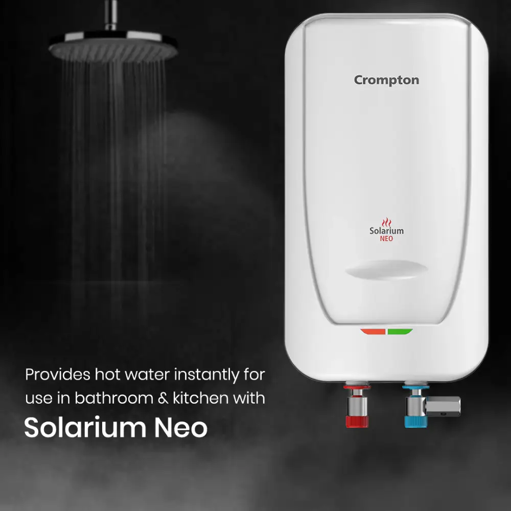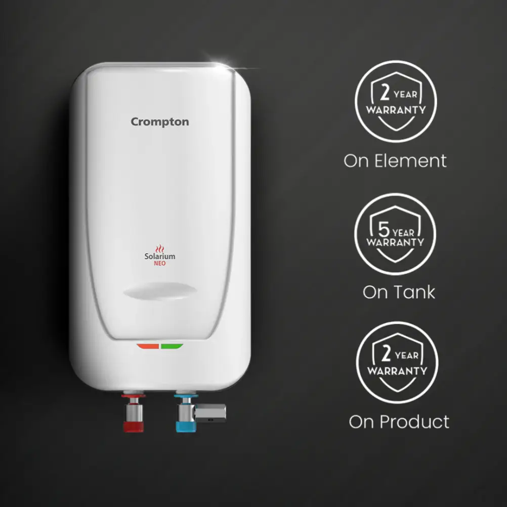 Start your day with the soothing warmth of the Crompton Solarium Neo Water Heater. Designed for quick heating, it reaches the ideal temperature in no time, so you can enjoy a cozy shower without the wait. Equipped with advanced 4-level safety features, the Solarium Neo ensures your peace of mind, allowing you to relax without any worries. Its sturdy, rustproof construction not only delivers exceptional performance but also maintains an attractive look for years to come. Efficient, reliable, and low maintenance, the Crompton Solarium Neo Water Heater perfectly balances comfort, performance, and durability making it a must-have for your home.