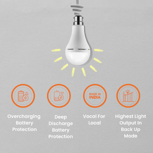 - High Light Output During Back Up Mode: The Emergency Bulb of 9W gives you the output of 350 lumens during AC supply.