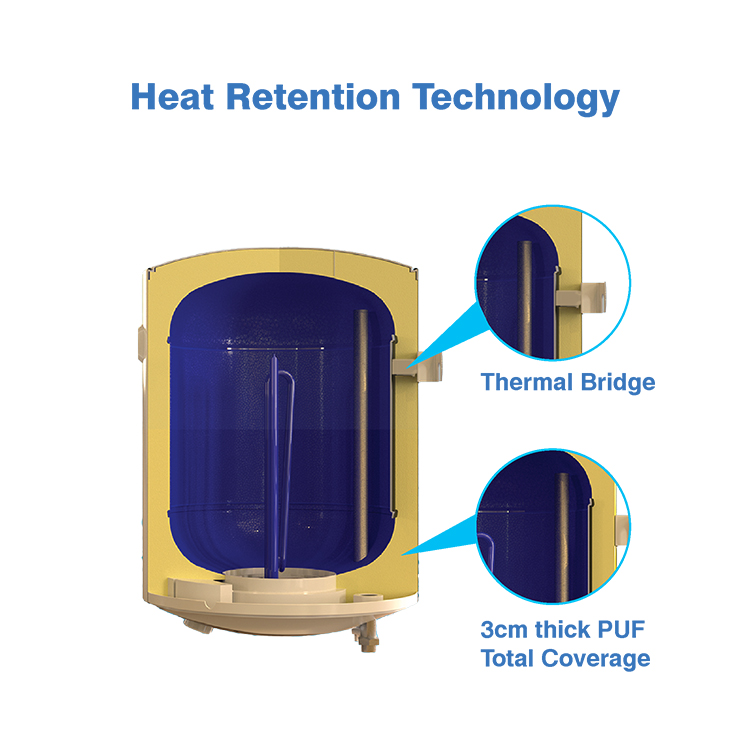 Heat Retention Technology: No Thermal Bridge Between the tank and the external Housing, there by enabling 16% lower Thermal Losses.